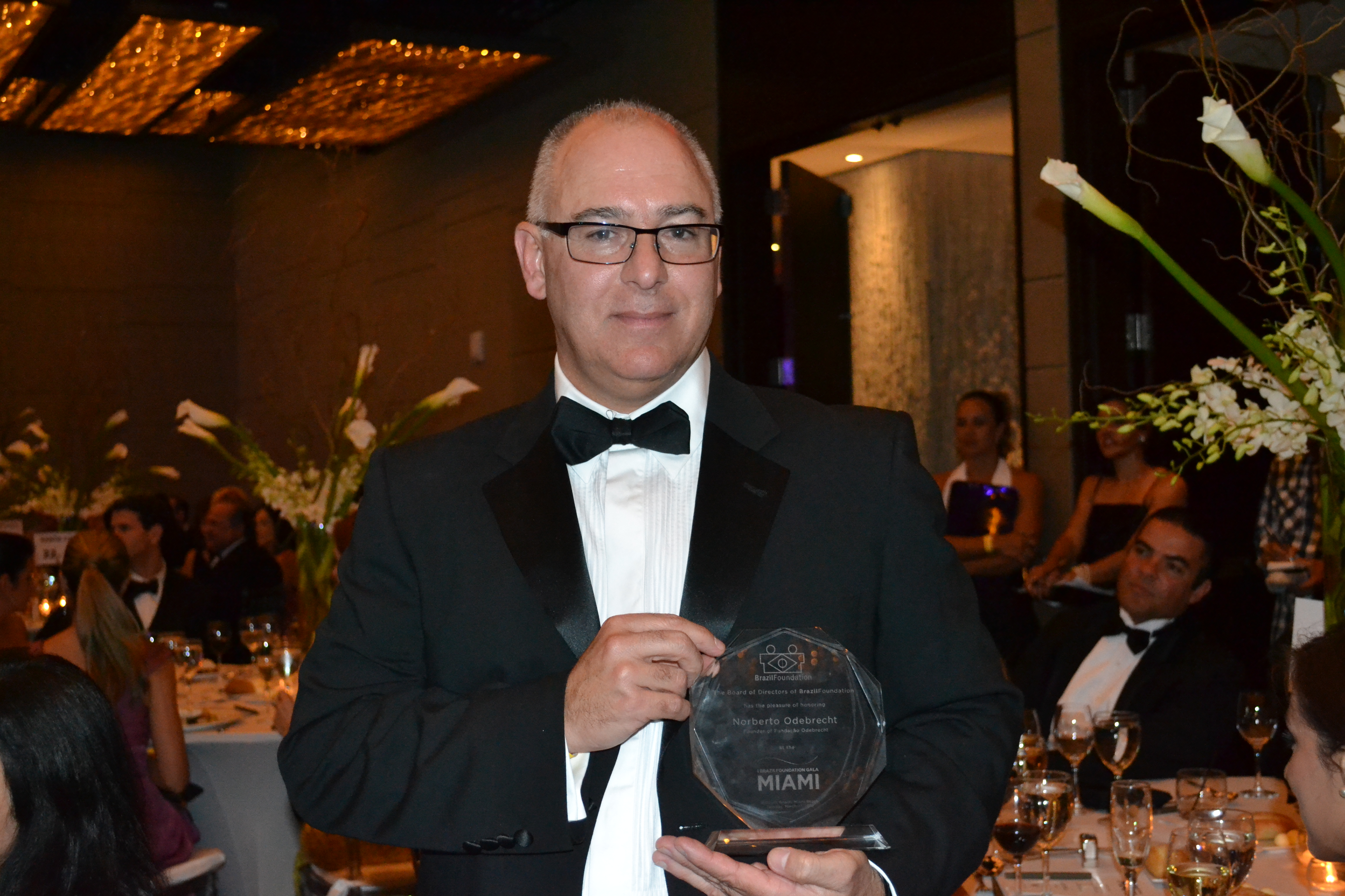 Gilberto Neves, presidente da Odebrecht nos Estados Unidos, recebe prêmio em nome de Norberto Odebrecht, principal homenageado da noite