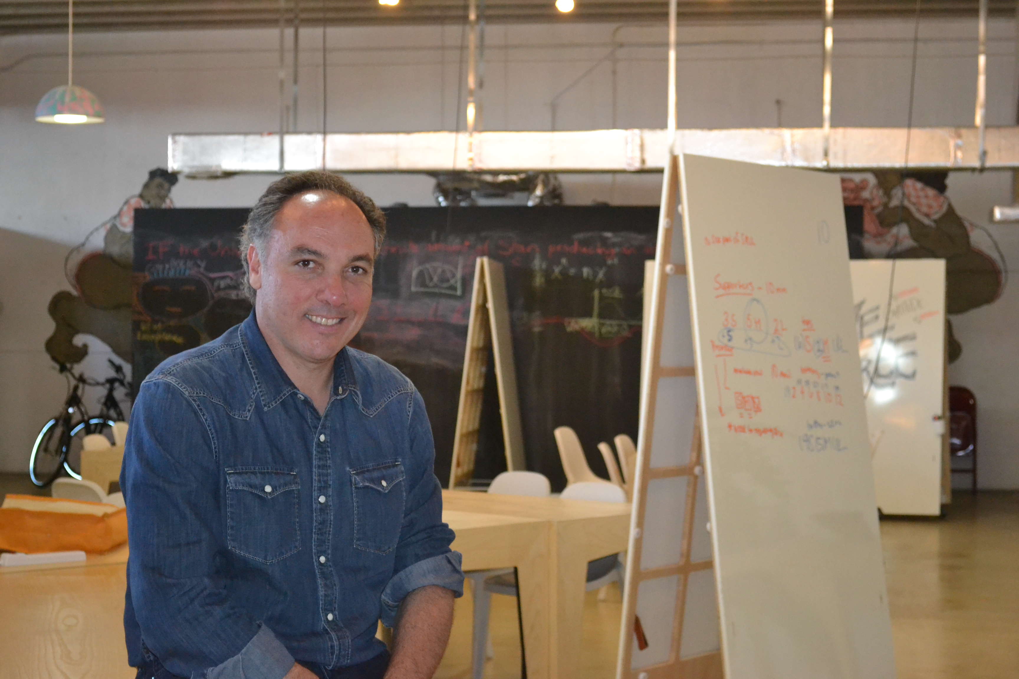 O quadro ao lado de Bellino é outra iniciativa do empreendedor. São 100 obras feitas com capsulas da Nespresso. Este é de Andy Warhol, artista que desenhou a lata de sopa Campbell’s, inspiração para Sopa de Pedra, tema de palestras de Ricardo Bellino. Os quadros são vendidos por US$15 mil cada. Este foi uma doação para a sede da School of Life. Para ver todos, visite http://www.saatchionline.com/Artmakers. Foto de Carla Guarilha