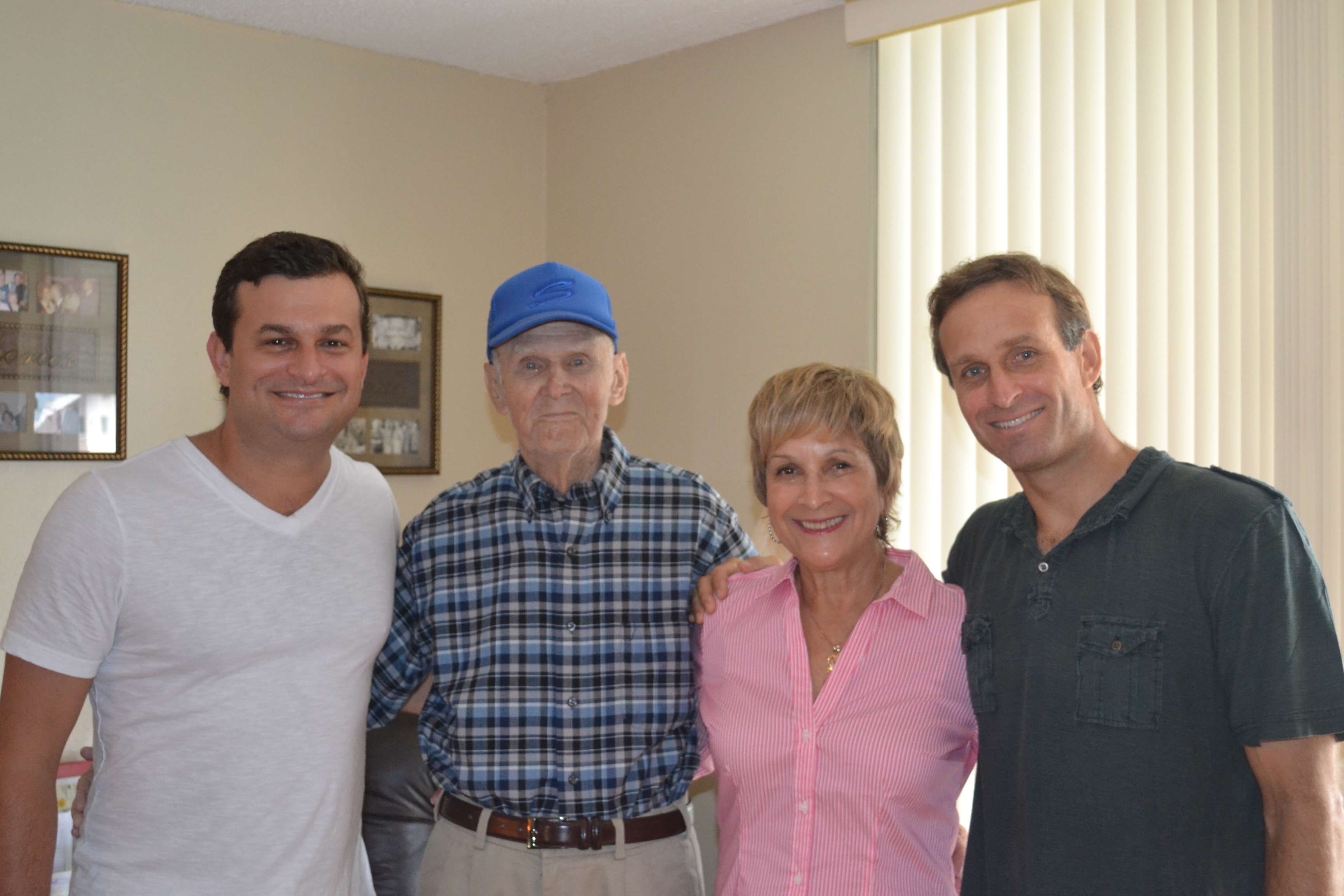 David Schurmann (esq.), Eddie, padrasto de Heloisa, que mora em Miami e fez 90 anos no domingo, Heloisa e Wilhelm, o caçula da família. Foto de Carla Guarilha