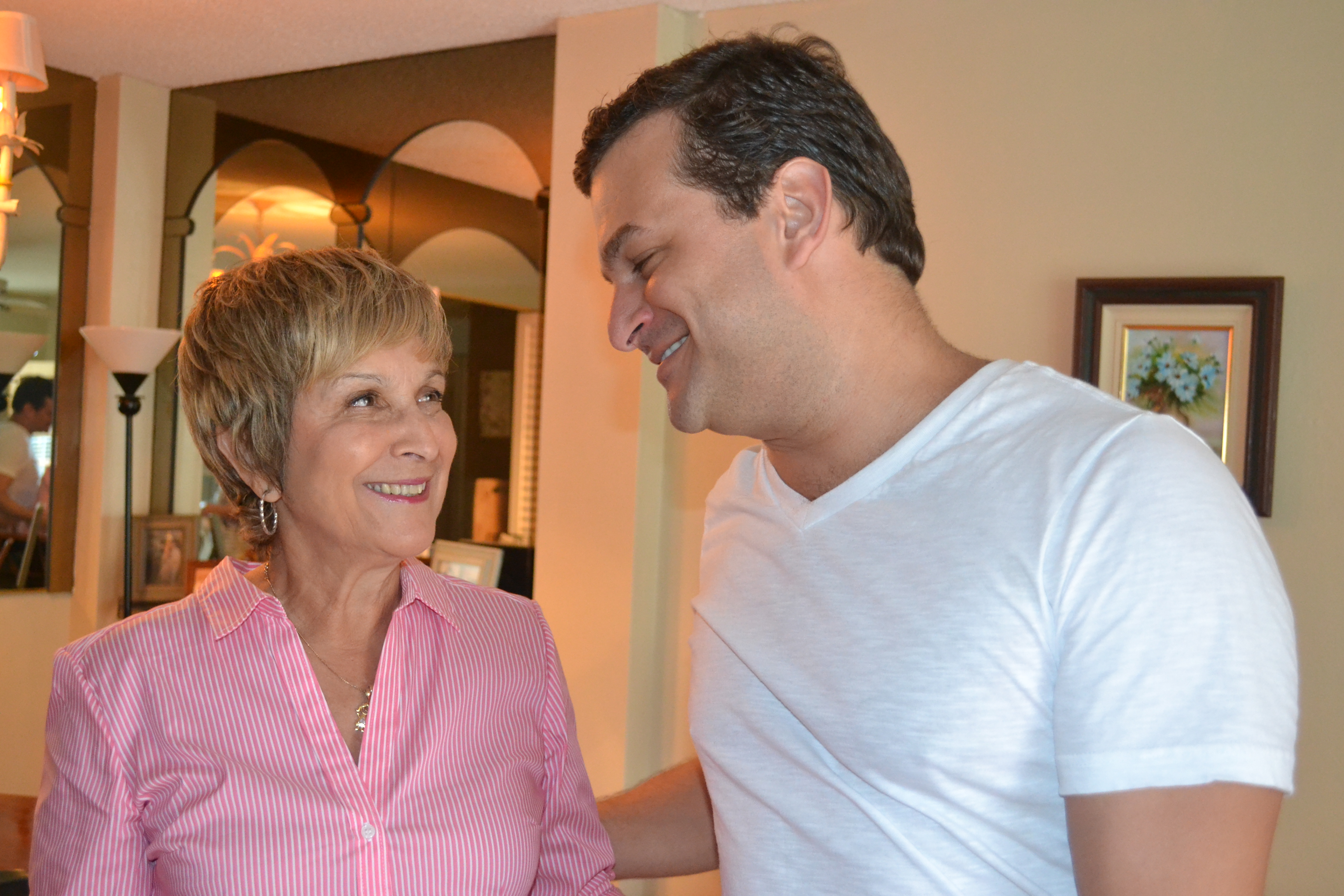 Heloisa, na casa de Eddie, em Miami, mostra com orgulho a capa do livro. Seu pai biológico morreu quando ela tinha 4 anos. Foto de Carla Guarilha