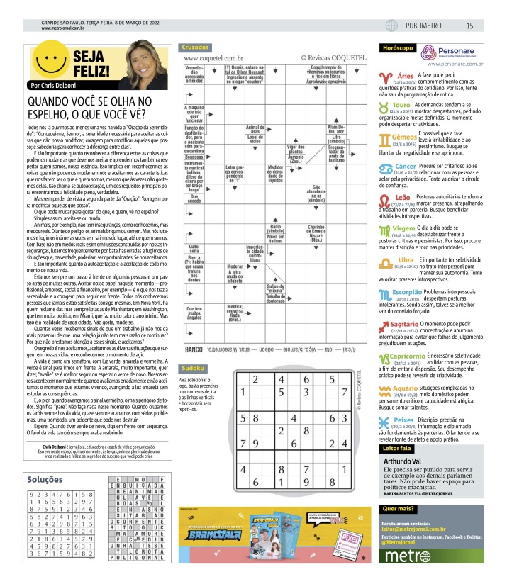 Coluna Seja Feliz! Leia no Metro Jornal.