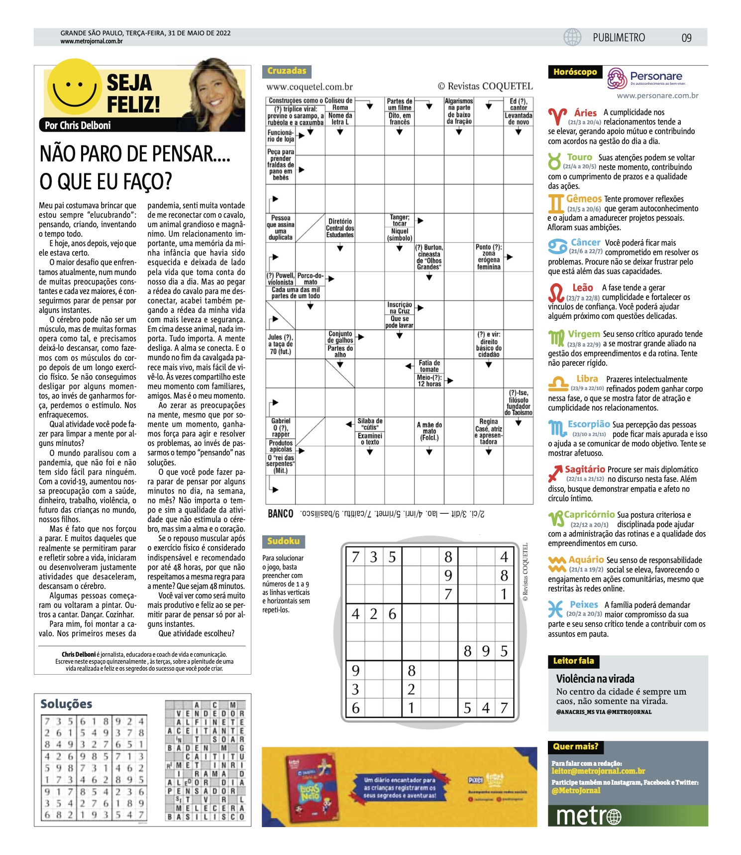 O que você pode fazer pa- ra parar de pensar por alguns minutos no dia, na semana, no mês? Não importa o tem- po e sim a qualidade da ativi- dade que não estimula o cére- bro, mas sim a alma e o coração.