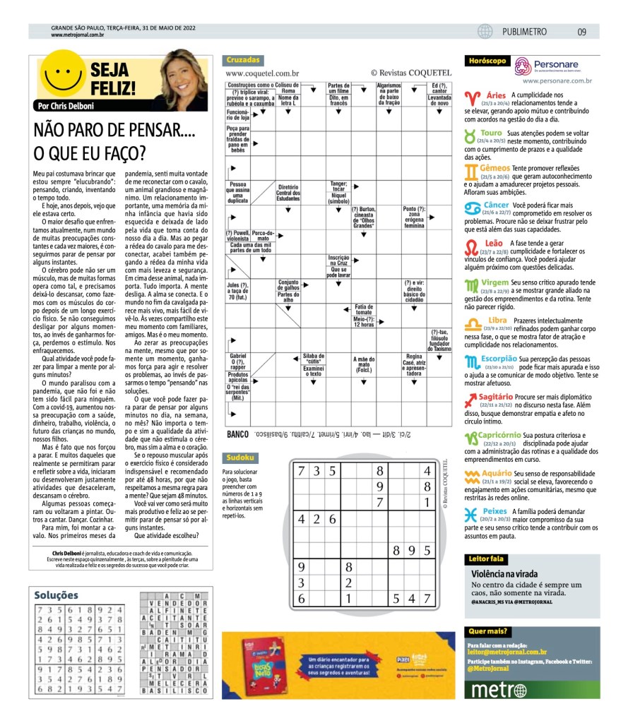 Chris Delboni é jornalista, educadora e coach de vida e comunicação. Escreve neste espaço quinzenalmente , às terças, sobre a plenitude de uma vida realizada e feliz e os segredos do sucesso que você pode criar.