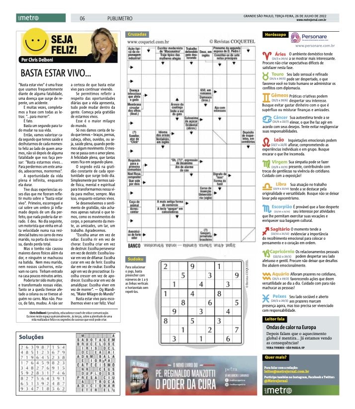 Coluna Seja Feliz! no Metro Jornal